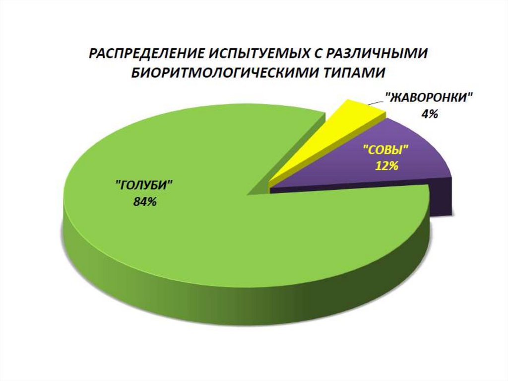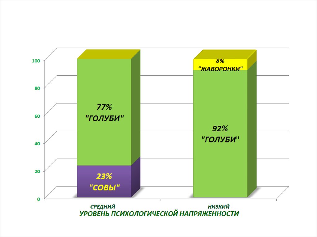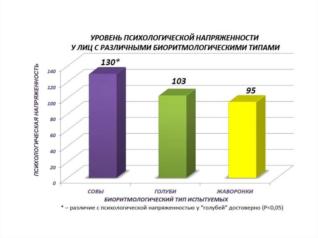 Уровень психологической напряженности у лиц с различными биоритмологическими типами