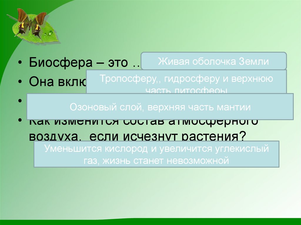Биосфера - или сфера жизни Земли, не занимаетобособленного положения, а располагается в