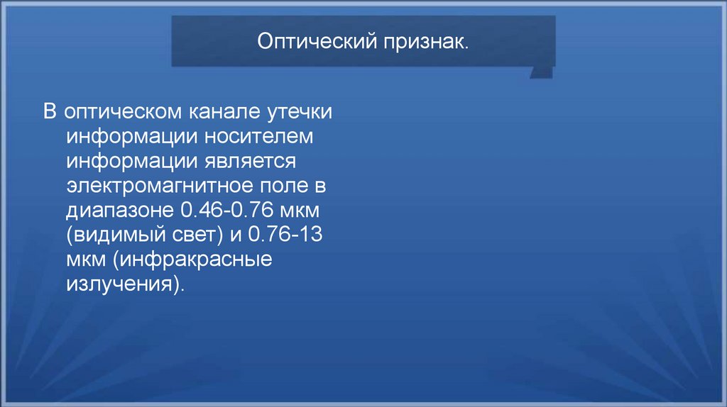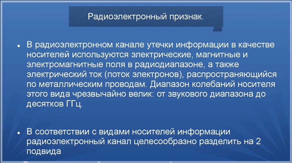Радиоэлектронный признак.В радиоэлектронном канале утечки информации в качестве