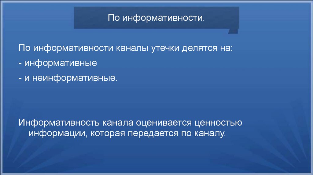 Структурный признак.По структуре каналы утечки разделяются на одноканальные