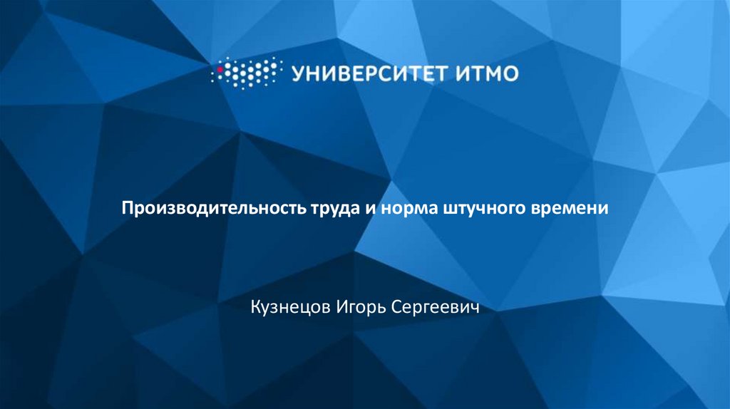 Производительность труда и норма штучного времениКузнецов Игорь Сергеевич