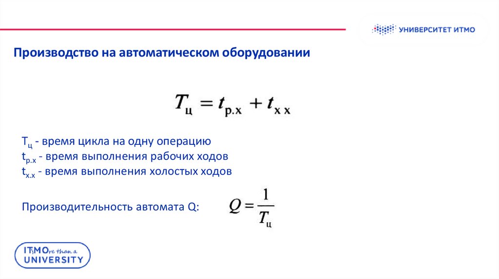 Производство на автоматическом оборудованииTц - время цикла на одну операцию
