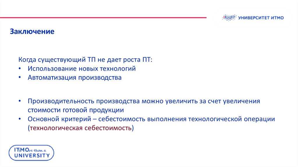 • Основной критерий – себестоимость выполнения технологической операции
