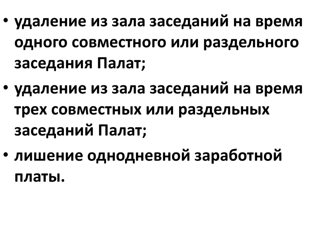 • лишение слова в течение трех совместных