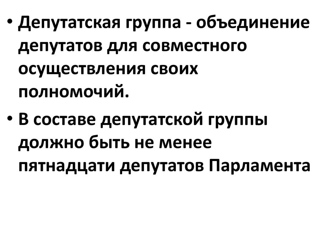 • Депутатская группа - объединениедепутатов для совместного