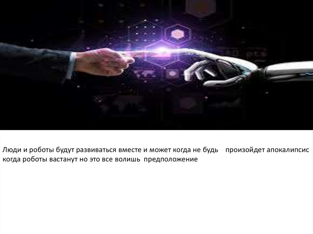 Люди и роботы будут развиваться вместе и может когда не будь произойдет апокалипсискогда роботы вастанут но это все волишь предположение