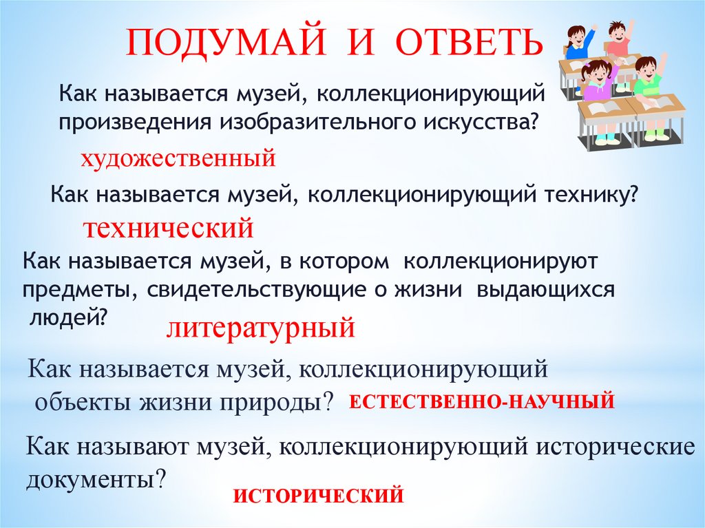 ПОДУМАЙ И ОТВЕТЬКак называется музей, коллекционирующий