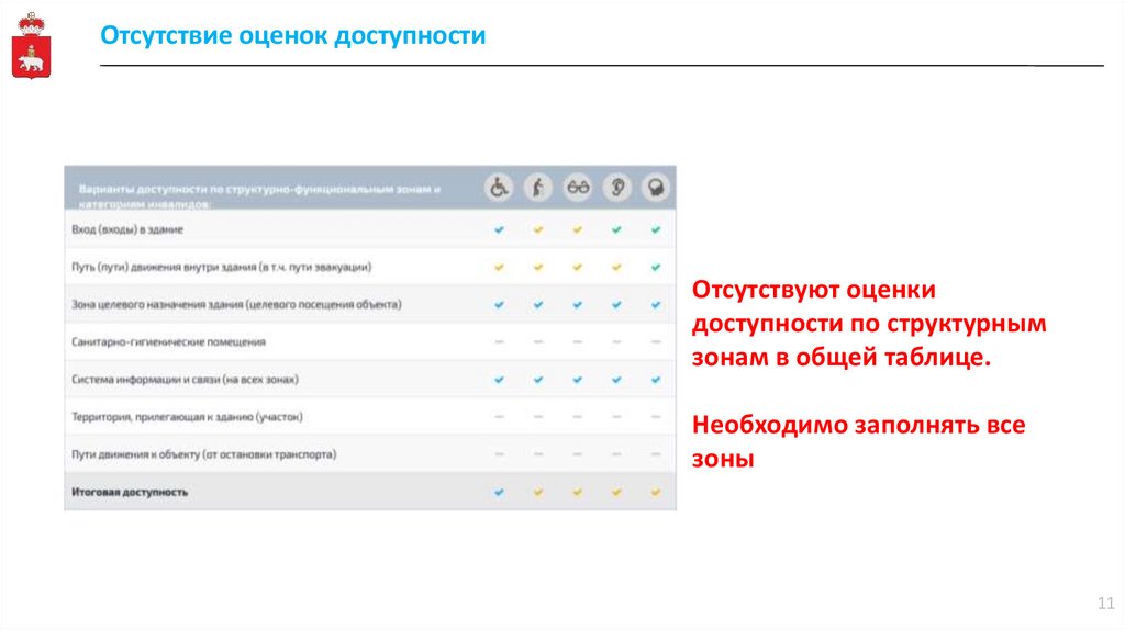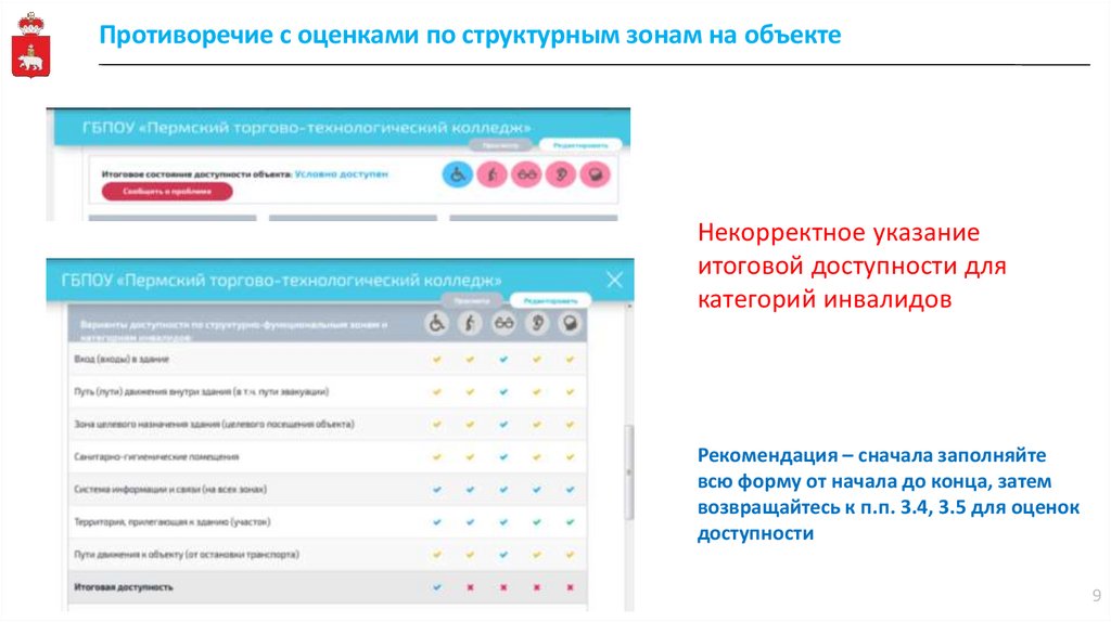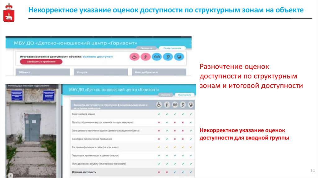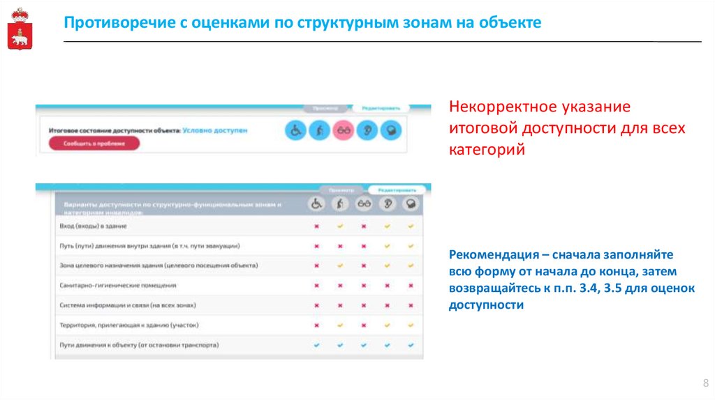 Некорректное указание оценок доступности по структурным зонам на объектеРазночтение оценок