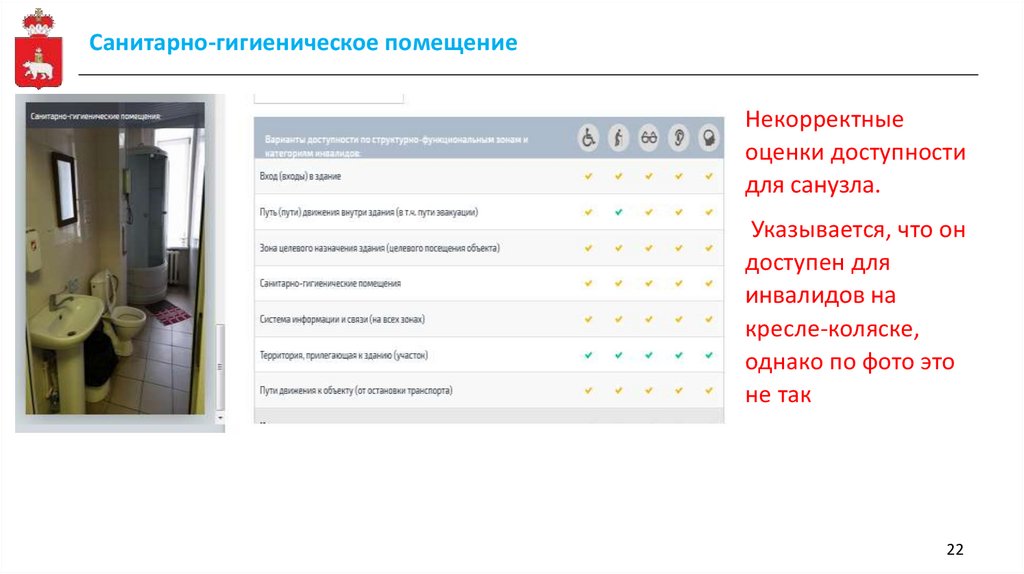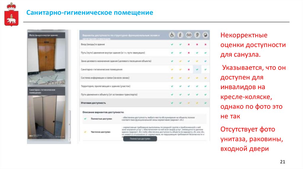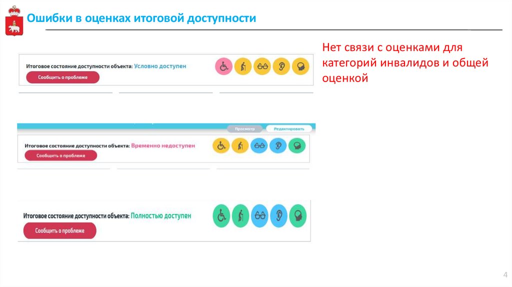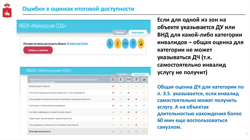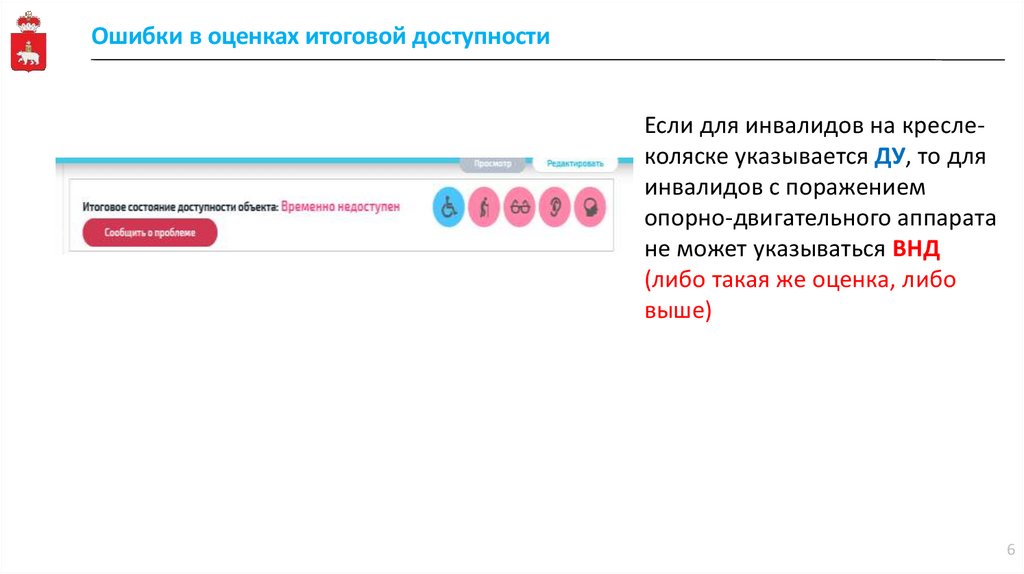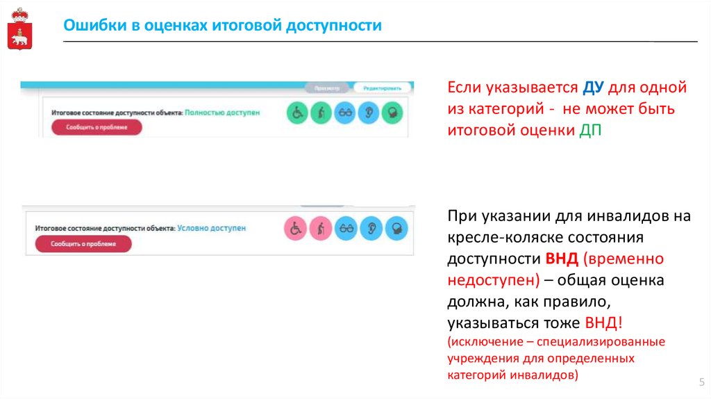 Ошибки в оценках итоговой доступностиЕсли для инвалидов на креслеколяске указывается ДУ, то для