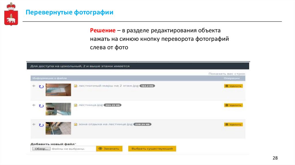 Перевернутые фотографииРешение – в разделе редактирования объекта
