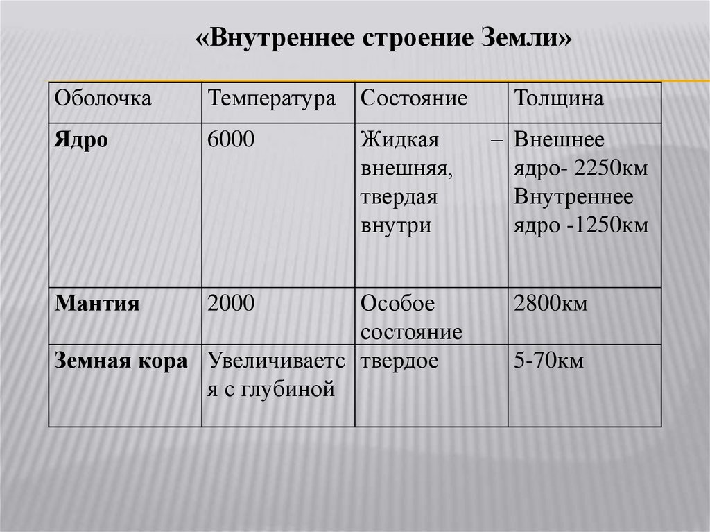 «Внутреннее строение Земли»Оболочка