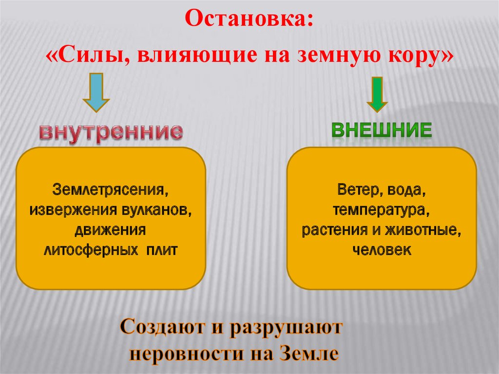 Остановка:«Силы, влияющие на земную кору»
