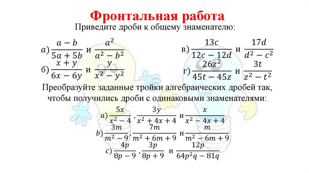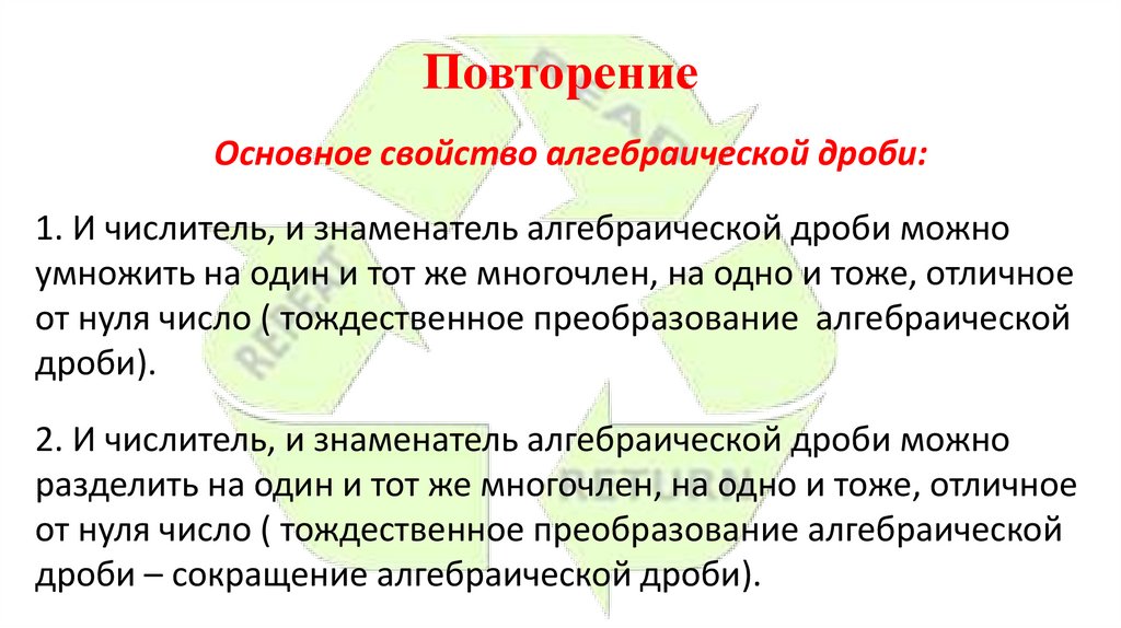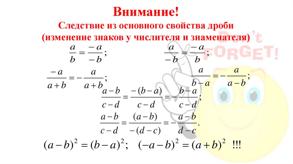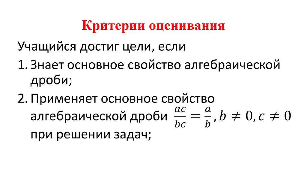 Алгебраические дроби. Основное свойство алгебраической дроби. 8 класс