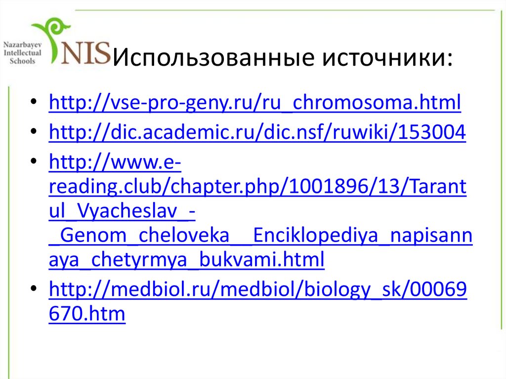 Использованные источники:• http://vse-pro-geny.ru/ru_chromosoma.html