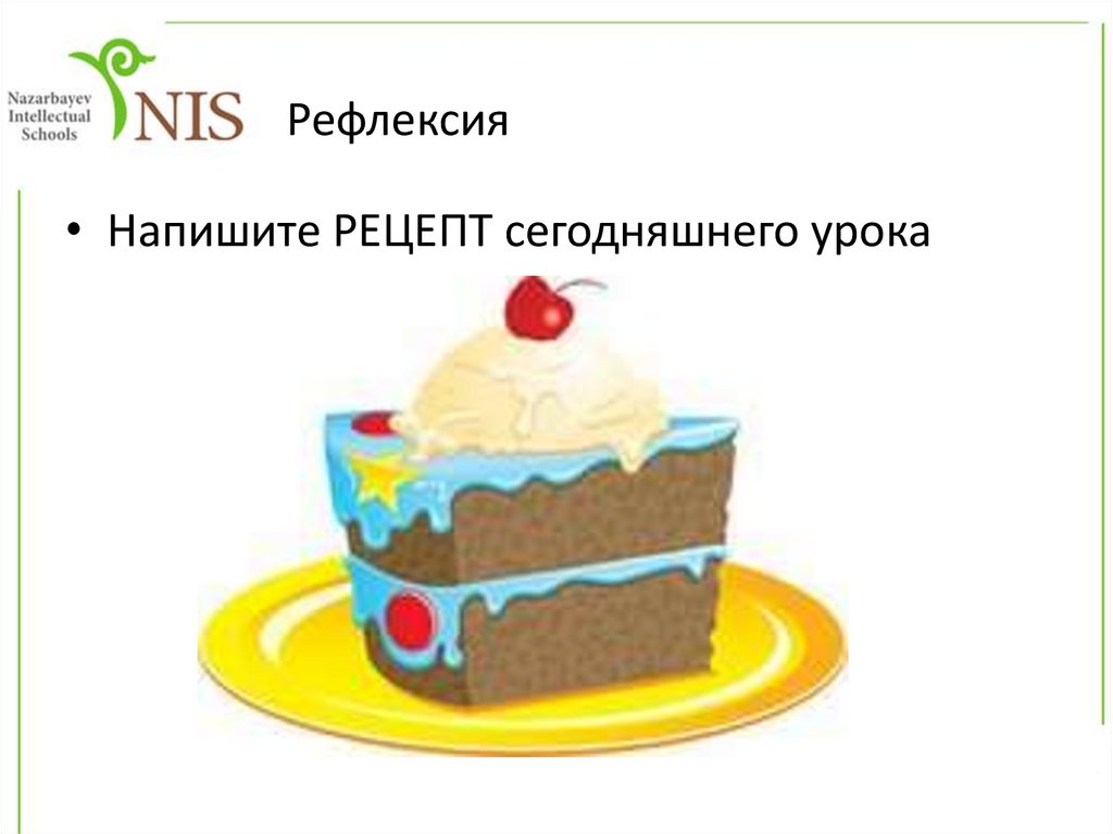 Рефлексия• Напишите РЕЦЕПТ сегодняшнего урока