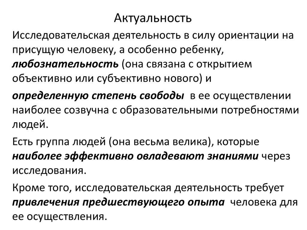 АктуальностьИсследовательская деятельность в силу ориентации на