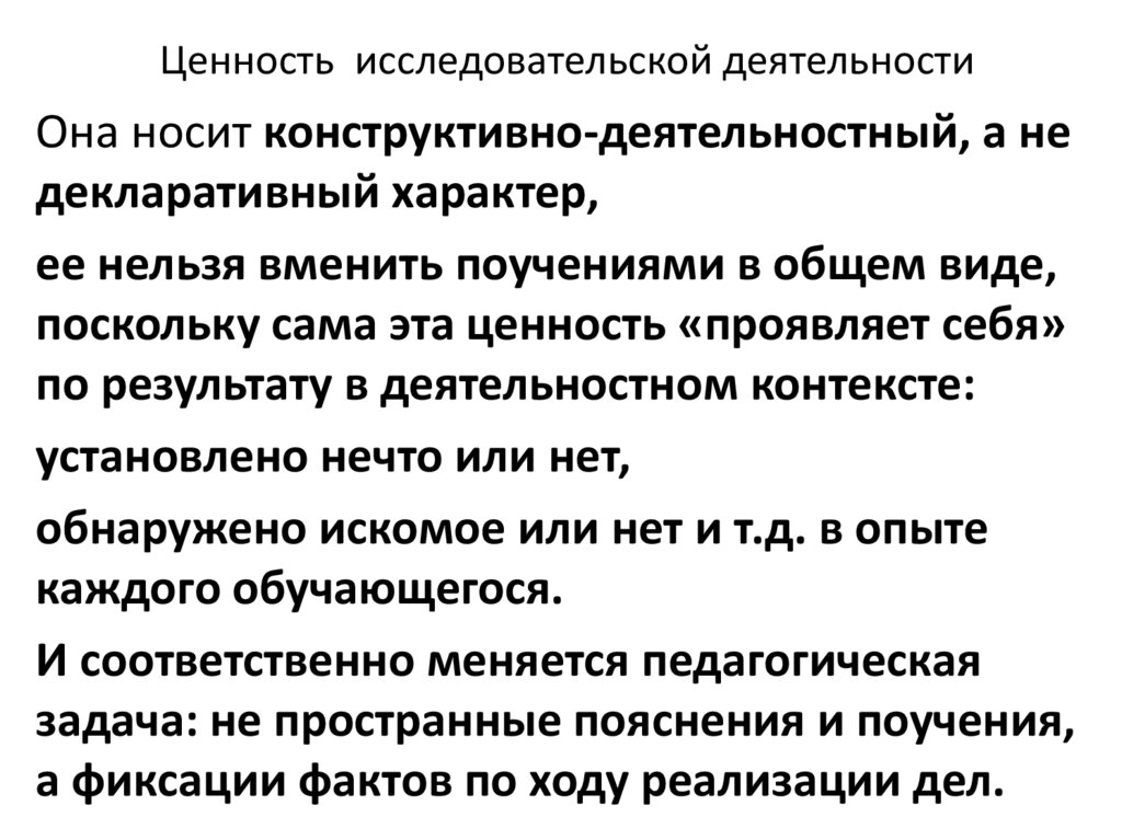 Ценность исследовательской деятельностиОна носит конструктивно-деятельностный, а не