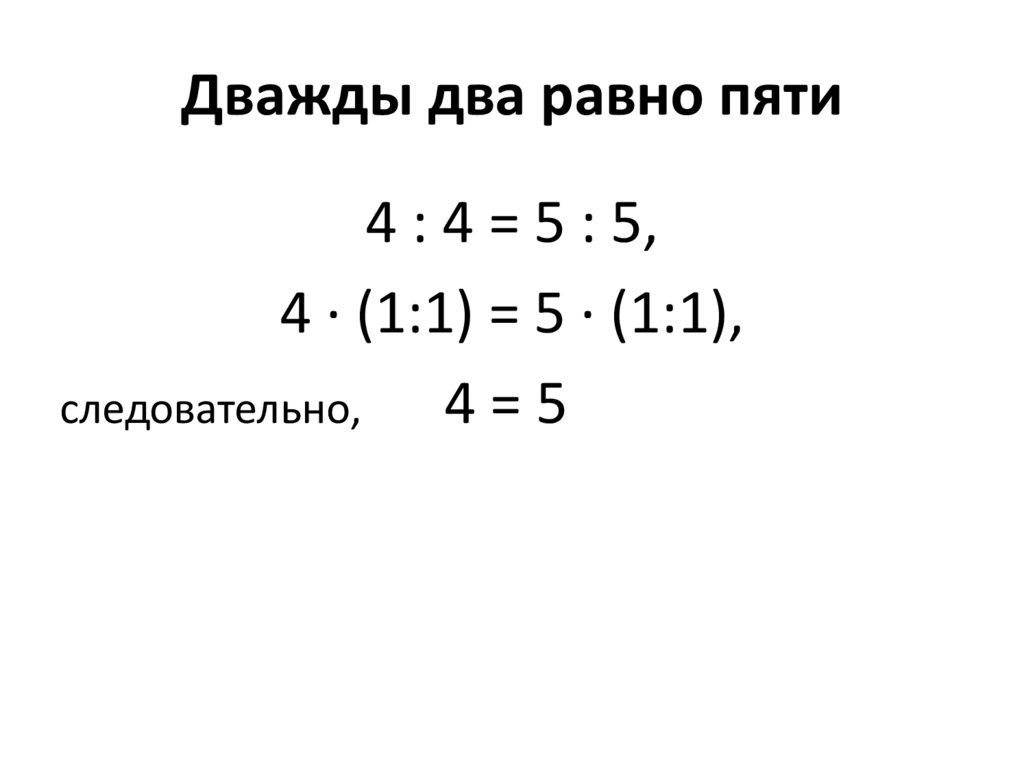 Дважды два равно пяти4 : 4 = 5 : 5,