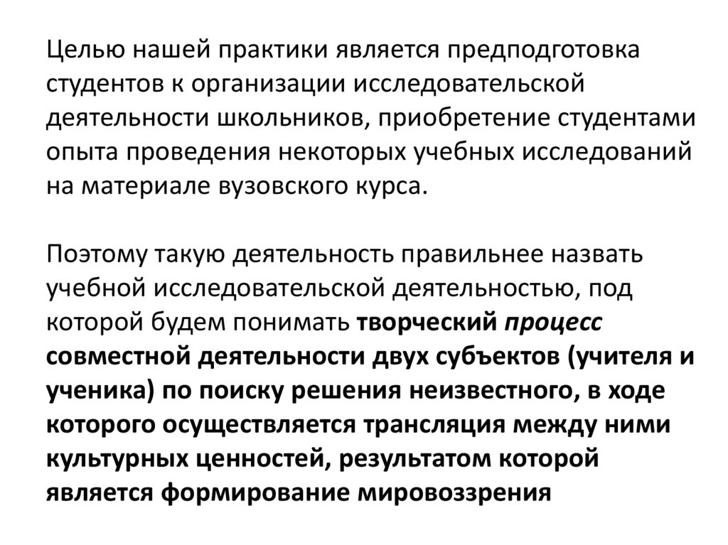 Целью нашей практики является предподготовкастудентов к организации исследовательской