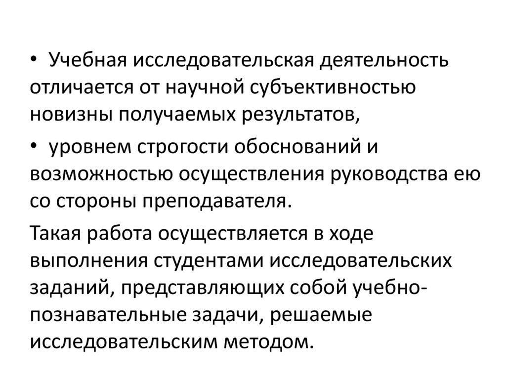 • Учебная исследовательская деятельностьотличается от научной субъективностью