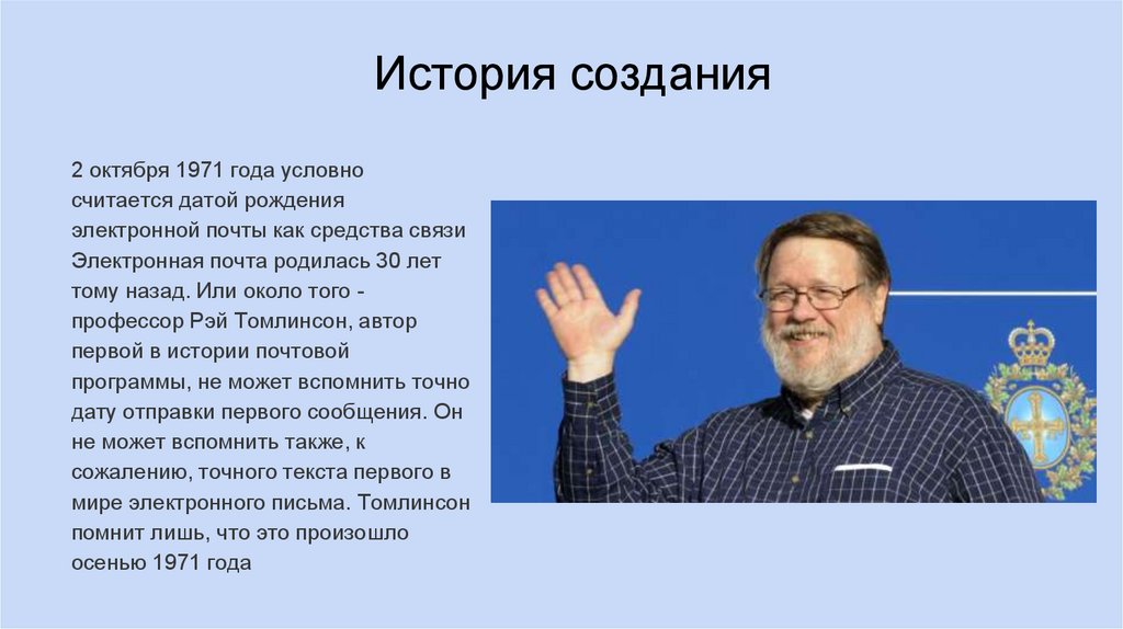 тому назад. Или около того профессор Рэй Томлинсон, автор
