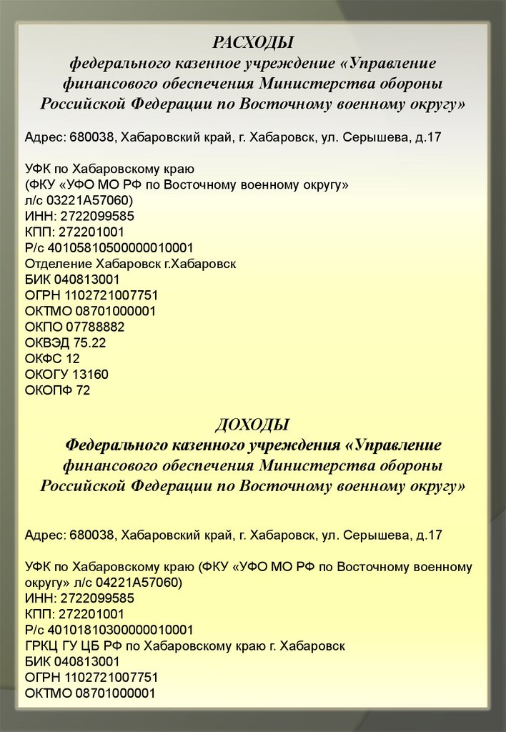 УФК по Хабаровскому краю (ФКУ «УФО МО РФ по Восточному военному