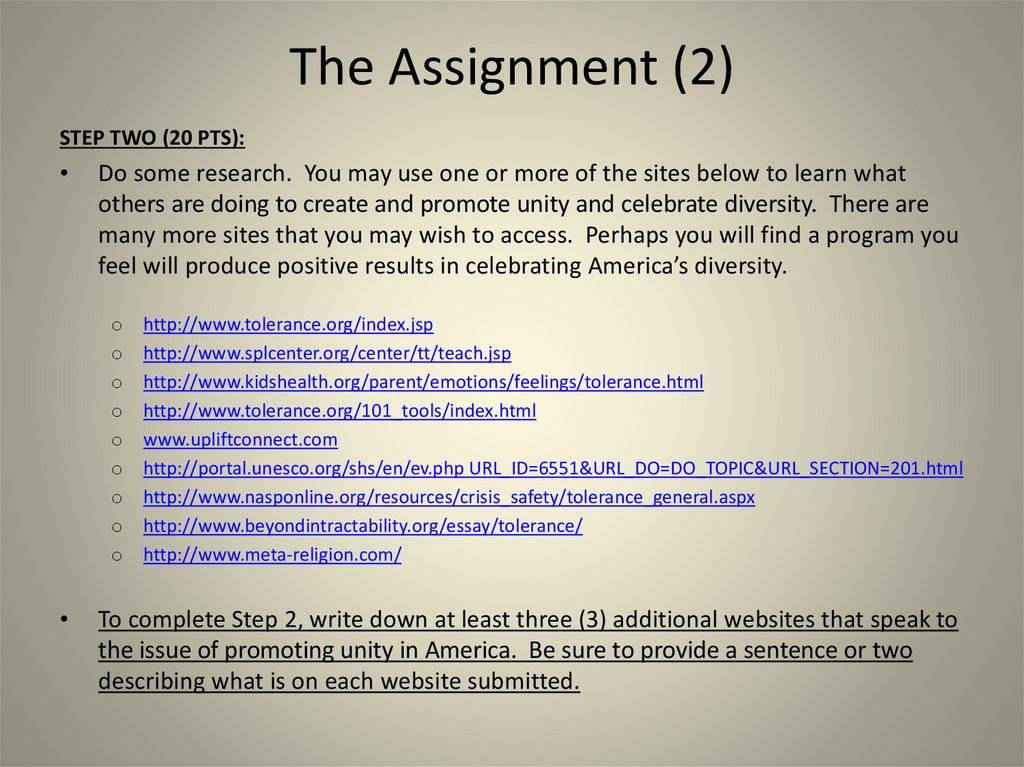 To complete Step 2, write down at least three (3) additional websites that speak to
