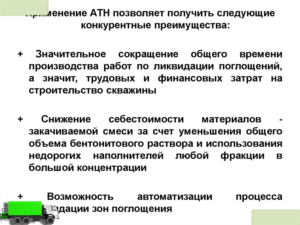 Применение АТН позволяет получить следующиеконкурентные преимущества: