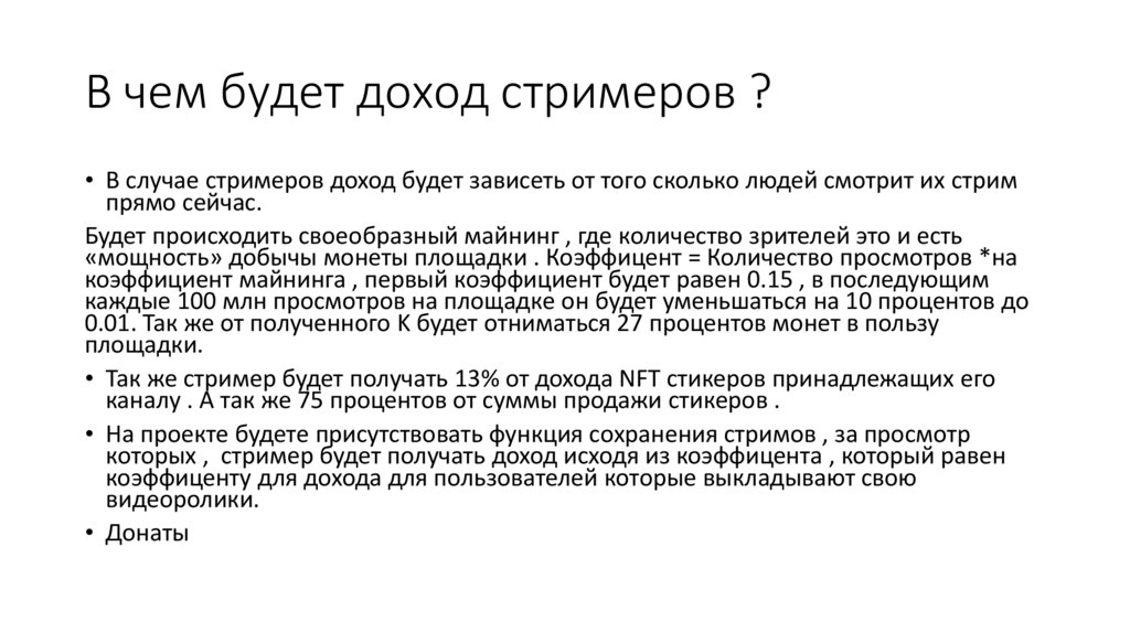 В чем будет доход стримеров ?• В случае стримеров доход будет зависеть от того сколько людей смотрит их стрим