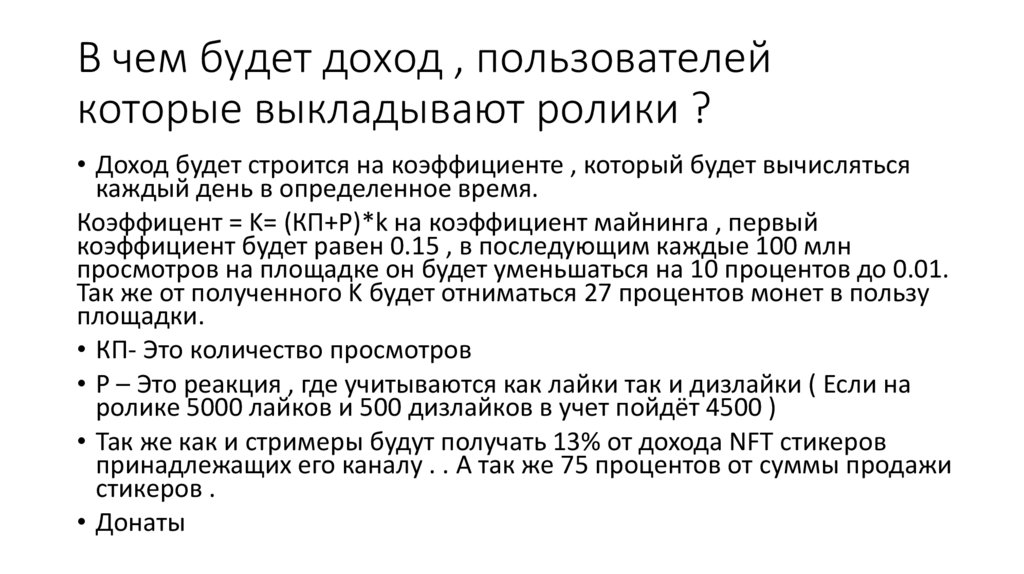 В чем будет доход , пользователейкоторые выкладывают ролики ?