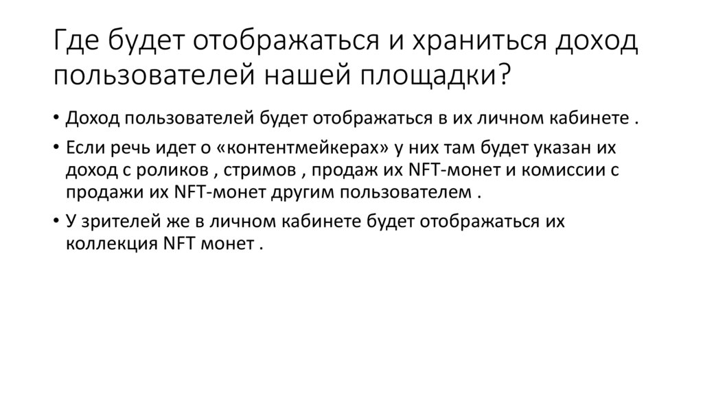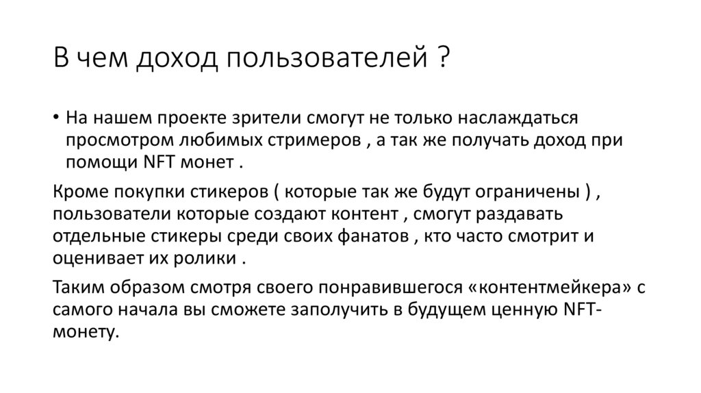 В чем доход пользователей ?• На нашем проекте зрители смогут не только наслаждаться