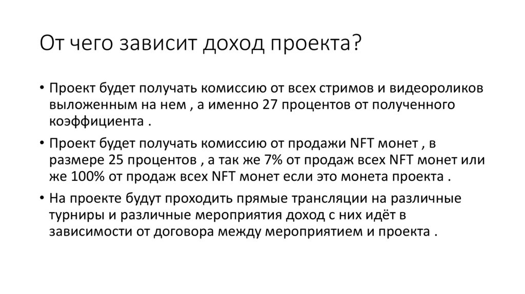 От чего зависит доход проекта?• Проект будет получать комиссию от всех стримов и видеороликов