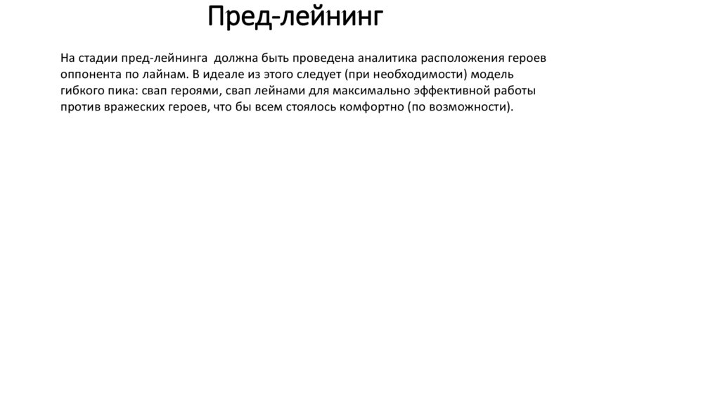 Пред-лейнингНа стадии пред-лейнинга должна быть проведена аналитика расположения героев