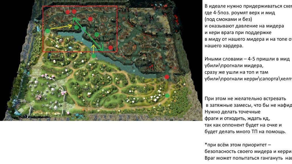 В идеале нужно придерживаться схемгде 4-5поз. роумят верх и мид