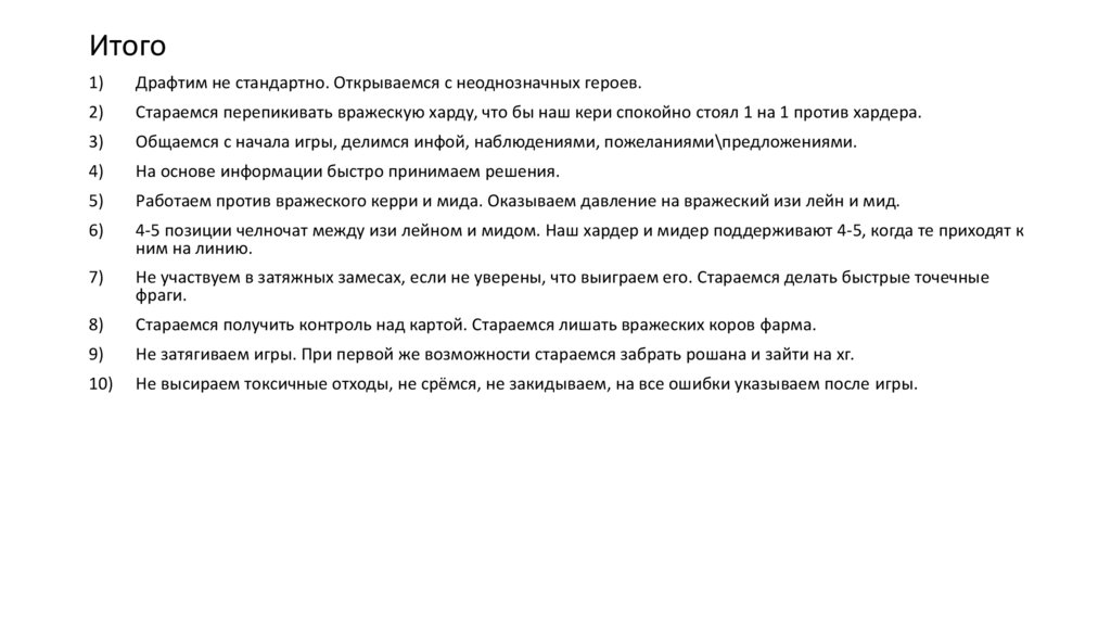 Не затягиваем игры. При первой же возможности стараемся забрать рошана и зайти на хг.