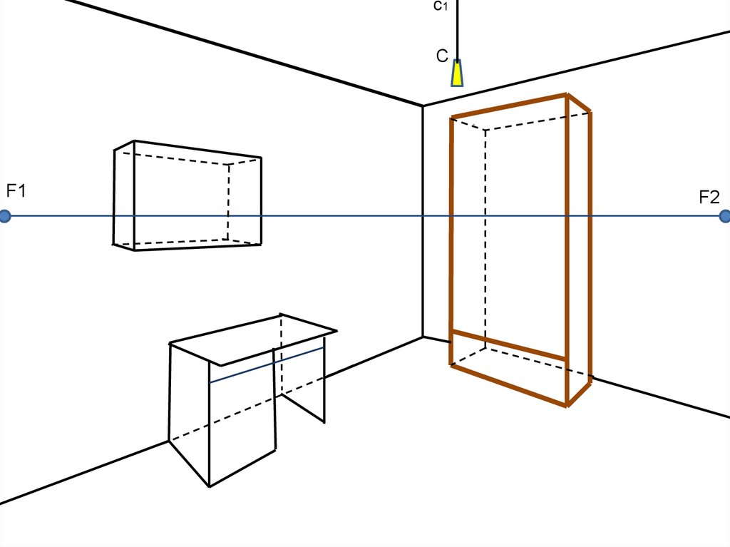 Построение перспективы интерьера (угловая перспектива) (по одной точке схода)