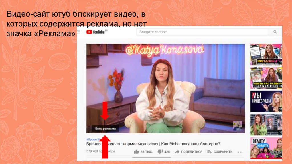 Видео-сайт ютуб блокирует видео, вкоторых содержится реклама, но нет