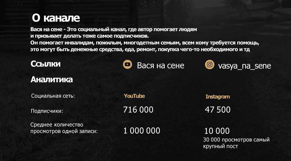 О каналеВася на сене - Это социальный канал, где автор помогает людям