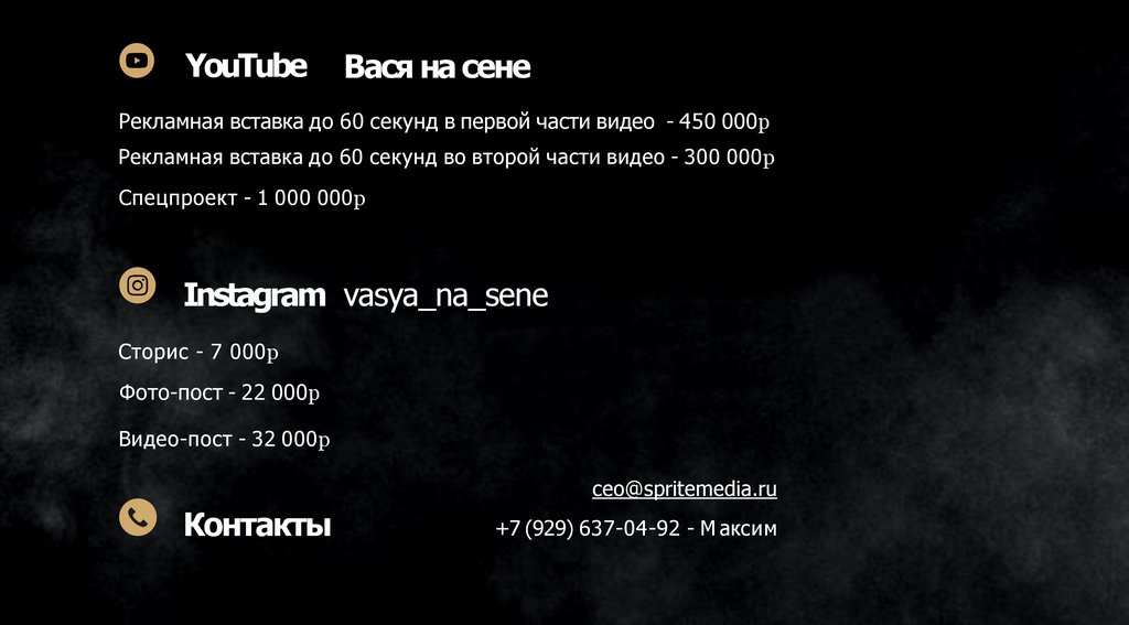 Вася на сенеСергей Лукьянов Youtube и Instagram Прайс-лист