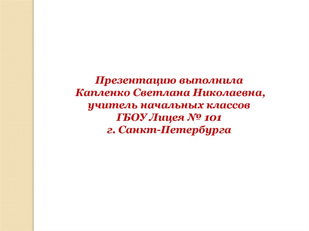 Презентацию выполнилаКапленко Светлана Николаевна,