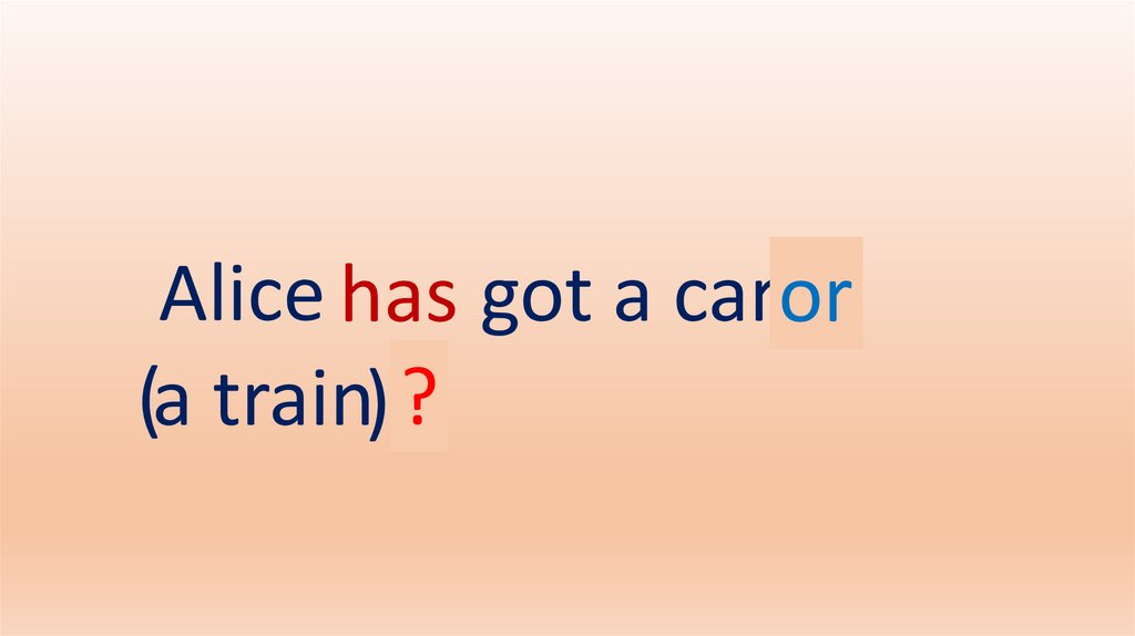 Alice has got a car.or(a train) .?