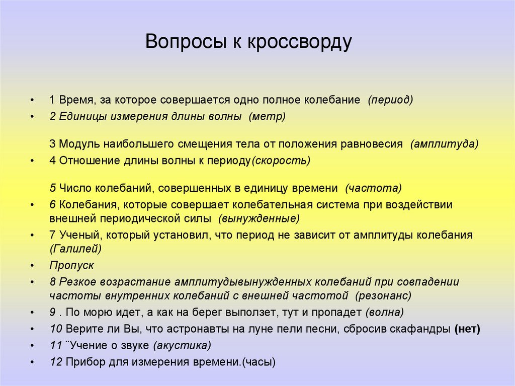 Вопросы к кроссворду1 Время, за которое совершается одно полное колебание (период)