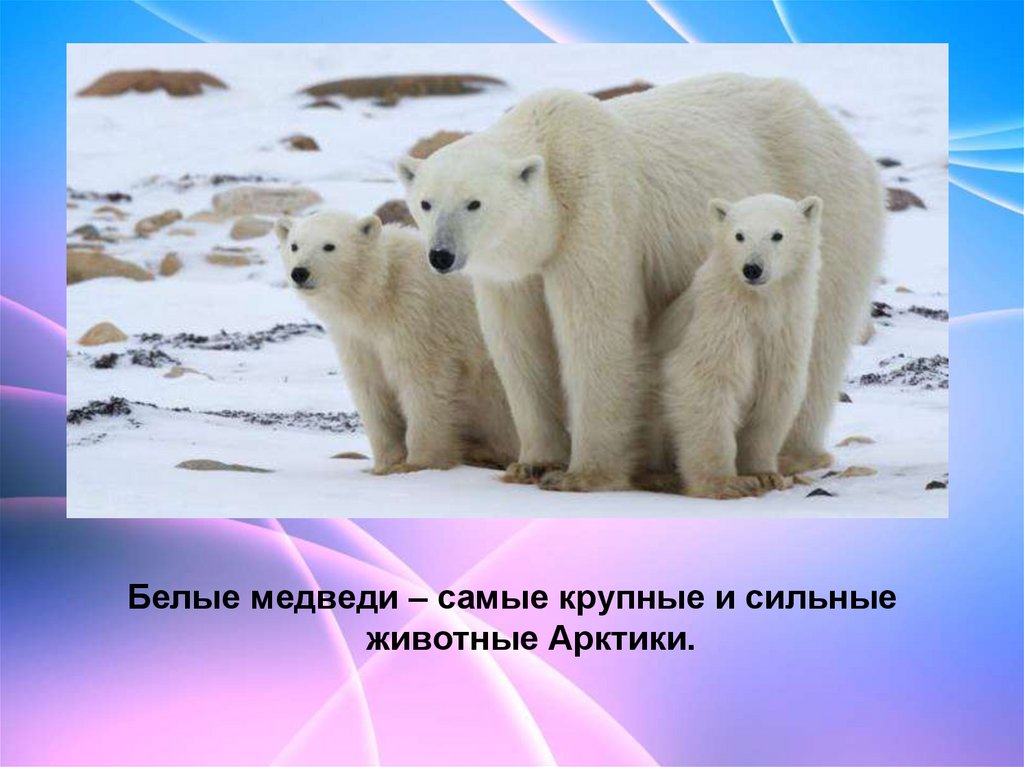Белые медведи – самые крупные и сильныеживотные Арктики.