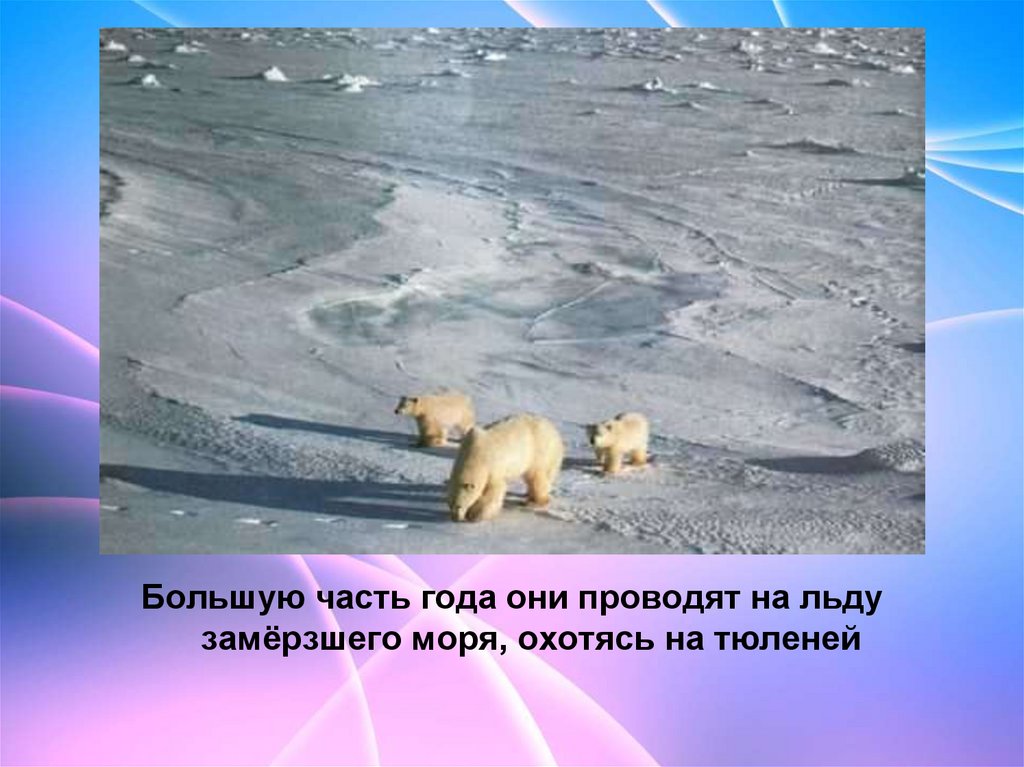 Большую часть года они проводят на льдузамёрзшего моря, охотясь на тюленей