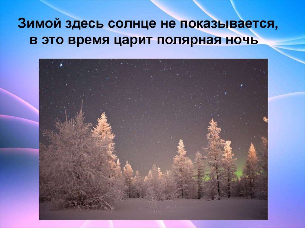 Зимой здесь солнце не показывается,в это время царит полярная ночь