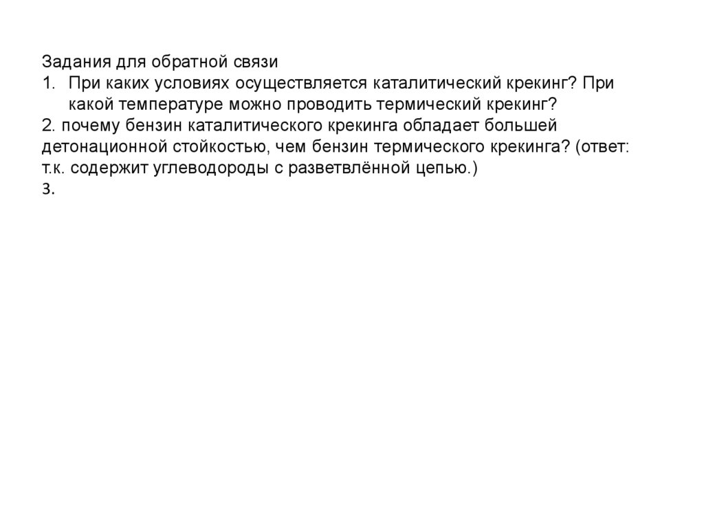Задания для обратной связи1. При каких условиях осуществляется каталитический крекинг? При