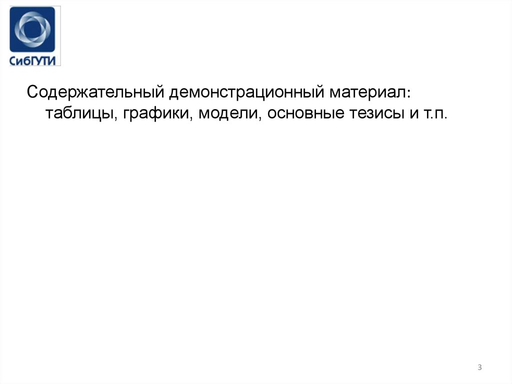 Содержательный демонстрационный материал:таблицы, графики, модели, основные тезисы и т.п.