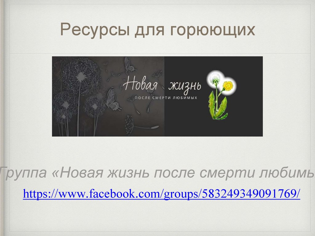 Ресурсы для горюющихhttps://www.facebook.com/groups/583249349091769/