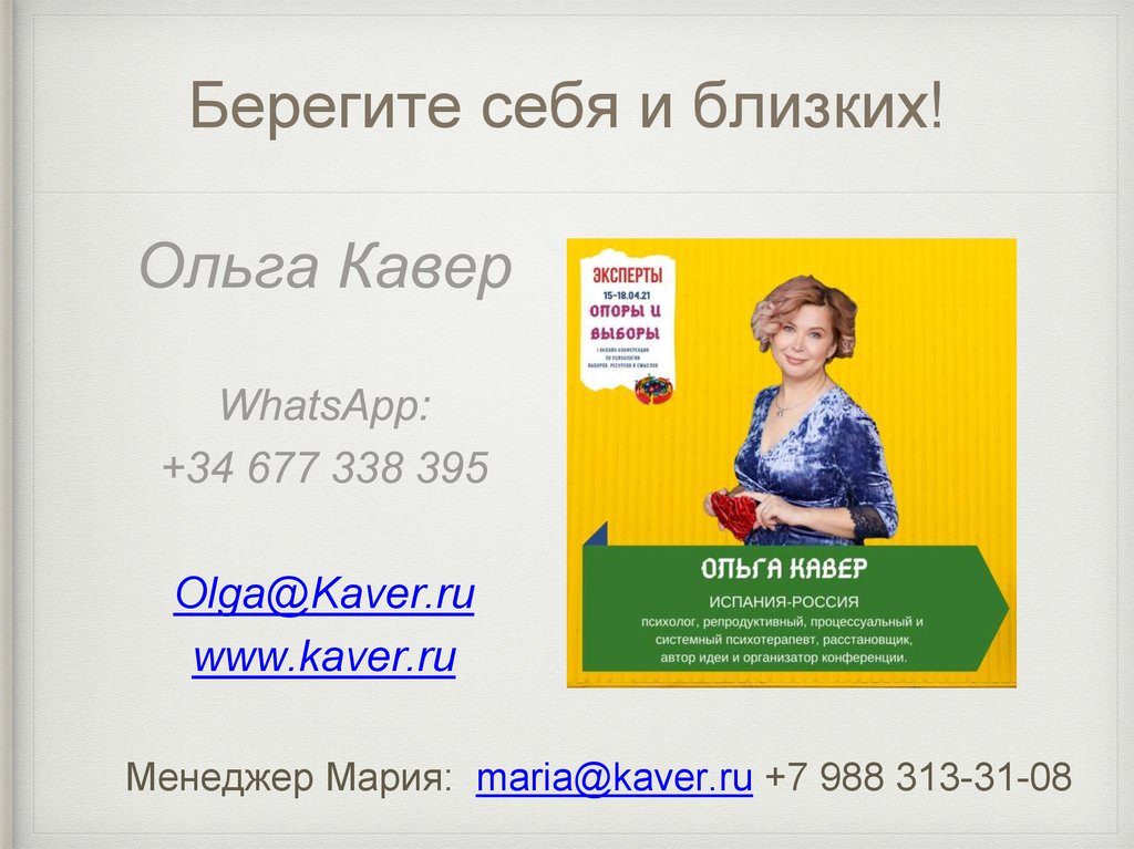 Записаться в группу Мария: maria@kaver.ru +7 988 313-31-0