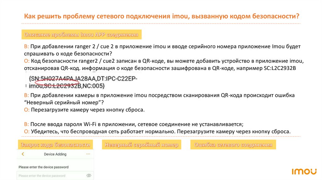 Как решить проблему сетевого подключения imou, вызванную кодом безопасности?В: При добавлении ranger 2 / cue 2 в приложение imou и вводе серийного номера приложение Imou будет